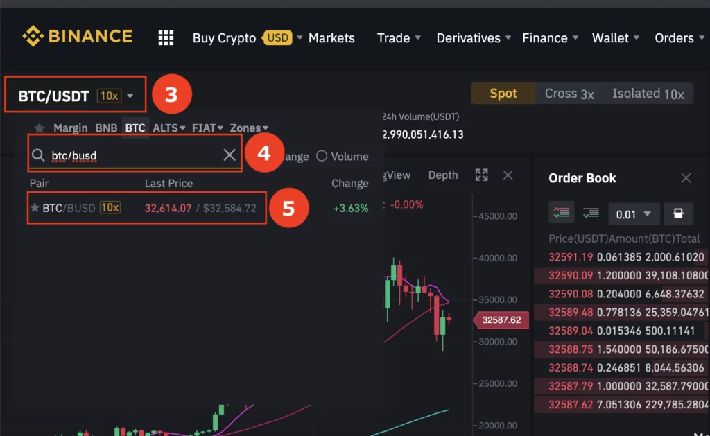 - 以 BTC/BUSD (虛擬貨幣 Pair)的匯率賣出 BUSD,買入 BTC